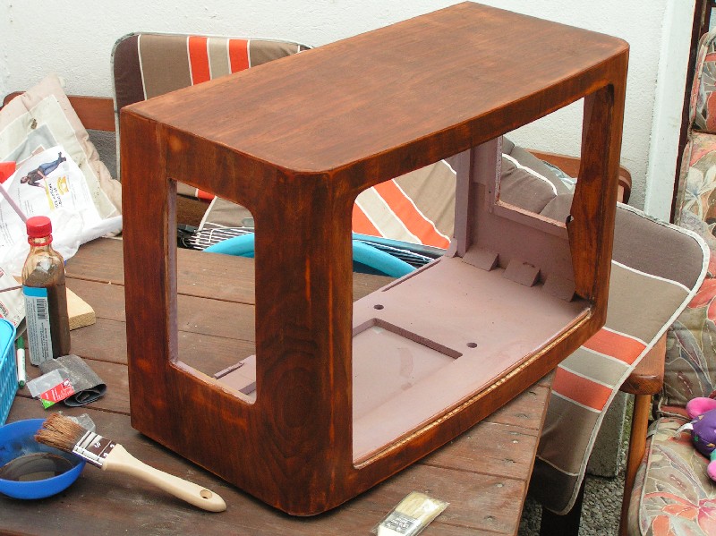 Das Geschliffene Gehäuse habe ich gebeizt (Farbton : teak).