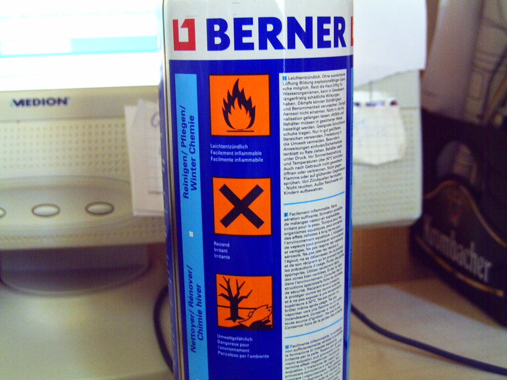 das nimmt der Profi zum Bremsenreinigen und zum effektiven Abfackeln der Werkstatt, aber nicht zum Radioreinigen - da nimmt am besten Tetrachlorkohlenstoff - auch das vielgelobte Kontakt 60 verursacht am Ende nur eine Riesenschweinerei, weil es nicht verdunstet und alles verklebt.