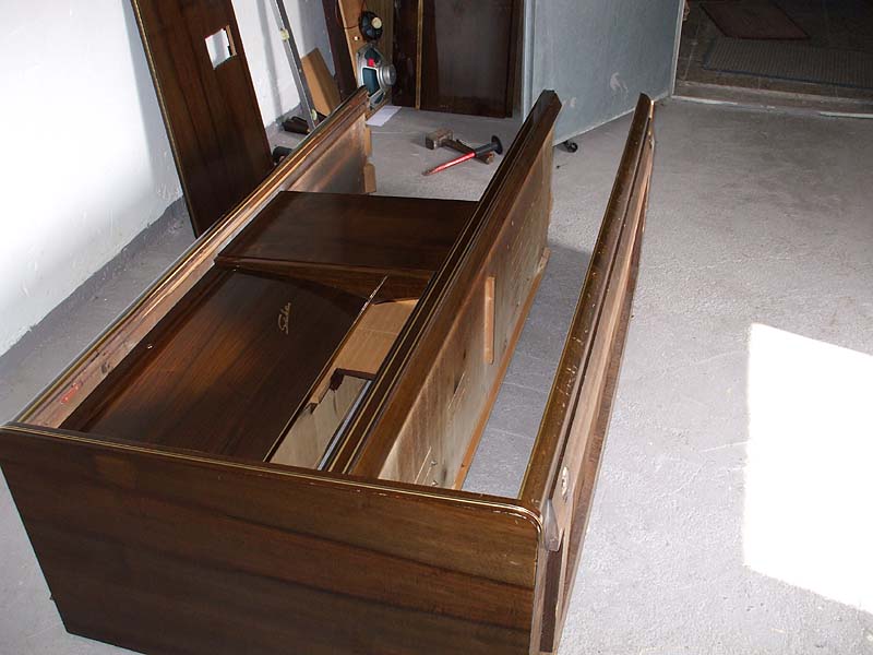 Das unnötige Fernsehteil mußte weg, die Truhe ist einfach zu groß.