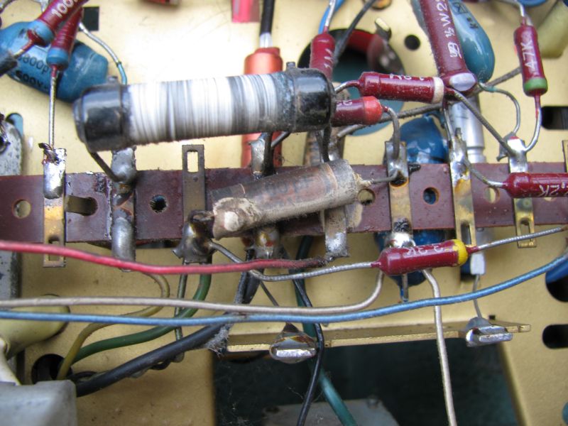 Im Tastenaggregat war ein Schieber ausgehängt und hat mit seinen Kontakten an der Fassung der EF 89 munter Kurzschlüsse verursacht, als der Verkäufer probiert hat das Radio zum laufen zu bringen ( Sicherung mit Alufolie überbrückt !!! )