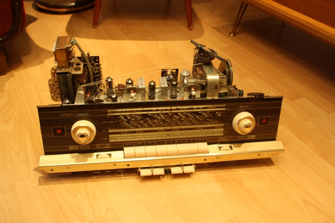 Nachtrag: Wie mir noch aufgefallen ist, fehlt der SABA Schriftzug oben auf der rechten Schallwand ...