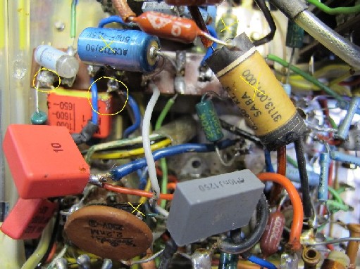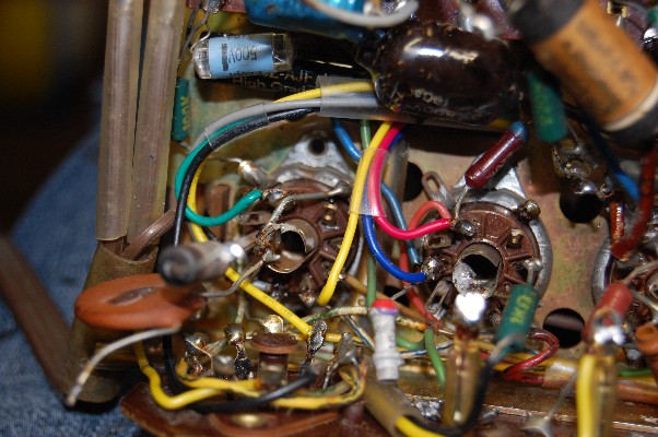 Momentan habe ich eine Sabine M auf dem Tisch. Außen ist die richtig Top, aber innen war so ziemlich alles was im Schaltplan mit "C" bezeichnet war kaputt. Inzwischen hab ich alles wieder repariert, neue Kondensatoren, Strippen auch ein durchgebrannter Widerstand wurde erneuert. Das einzige was ich bisher noch nicht reparieren konnte ist der AÜ. Der ist regelrecht abgefackelt.