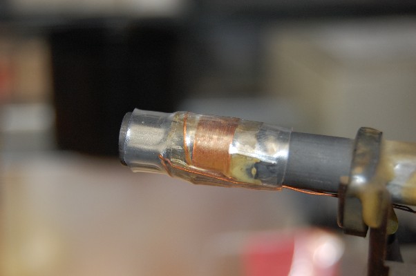 Hier der AÜ, man sieht deutlich daß die Isolierung und die Kabel verbrannt sind.
