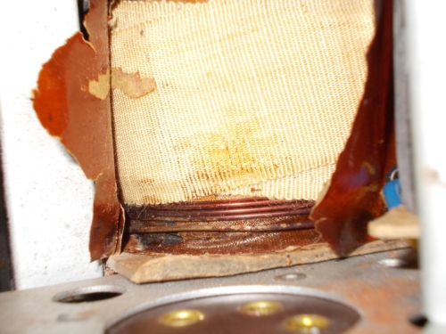 bei dem Trafo im Bild sieht man Schmorspuren im Bereich der Heizwicklung, also sekundär 6,3V oder - das ist auf dem Foto nicht ganz scharfabzugrenzen - im Bereich der unter der Heizwicklung liegenden Anodenwicklung (auch sekundär).
