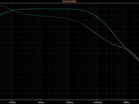 Die Phasenverschiebung von 180° wird bei 2 MHz (etwas weiter gefasst: ca. 1-2 MHz) erreicht. In diesem Bereich ist also Aufmerksamkeit bzgl. Schwingneigung gefragt. Allerdings ist die Schleifenverstärkung dort nicht mehr positiv. Der Verstärker schwingt also nicht. Bei 1 MHz beträgt die Schleifenverstärkung gerade noch 0 dB (keine Verstärkung), bei 2 MHz ist sie -7,5 dB. Die Phasenreserve von 40° ist nicht überragend aber ausreichend. Es gibt keinen Unterschied, ob C1165 (220pF) bestückt ist oder nicht. Also kann man C1165 demnach weglassen. In der Simulation hat er jedenfalls keinen Einfluss auf die Stabilität.