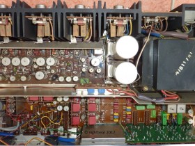 bevor die eigentliche Reparatur erfolgt (ein Kanal ist ausgefallen) kann ich schon einmal feststellen, dass bei diesem Verstärker ein immenser Azufwand betrieben wurde, eine wahre Materialschlacht zu bewundern ist.