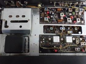 Das zweite Gerät hat lediglich eine leichte Nachkorrektur des Abgleichs gebraucht, insbes. Stereodekoder. Sämtliche grauen Elna Elkos konnte ich drinlassen. Auch alle Lämpchen sind noch in Ordnung. Hier gibt es eine Besonderheit, wenn man die Unterseite ansieht. Es sind zusätzliche Platinen mit Sicherungshalter für die einzelnen Baugruppen verbaut. Das sieht alles sehr original aus, ist aber so in keinem Schaltplan (im Netzt habe ich danach gesucht) gezeigt. Es gibt auch bisher im web kein Foto des KT-7000 der auf der Unterseite diese Sicherungen hat. Es müsste sich um eine Aenderung handeln, die erst in der späteren Serie eingeführt wurde, auch wenn die Bohrungen für die Sicherungsplatine von Anfang an schon vorhanden waren.