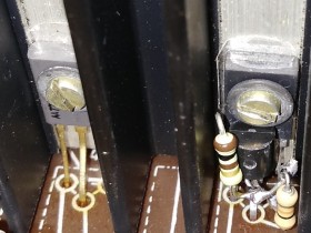 Kann man eine solche Hilfskonstruktion belassen, verbessert mit etwas Wärmeleitpaste zwischen den Einzeltransistoren und sicherer Isolation des Drahtverhaus?