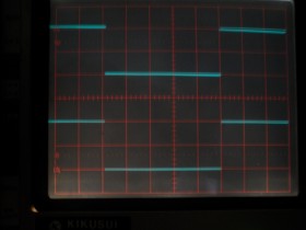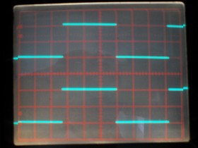 und sogar 20 Hz Rechteckwiedergabe (auch 10 Hz, aber das konnte ich aufgrund des Bildschirm-Flackerns bei dieser kleinen Frequenz bei meinem Analog-Scope nicht mehr fotografieren):