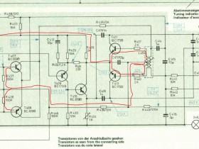Über diese Widerstände könntest Du mal bei eingeschalteter Stereotaste (-16V vor R443) den Spannungsabfall messen und hier posten.