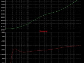 Frequenzgang der angepassten Schaltung 2: Grün - simulierter RIAA-Eingangspegel, Rot - Ausgangspegel, zeigt direkt die Abweichungen vom angestrebten 0-dB-Verlauf.