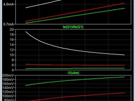 Mit R8/R12 = 22 Ohm und BD140 hatte ich einen Ruhestrom von 60 mA als DC-Spannungsabfall über einen 10 Ohm Angstwiderstand in der Stromversorgung jedes Kanals gemessen (allerdings bei gleichzeitigem 100 kHz Schwingen, wie sich später herausgestellt hat). Ohne den 10 Ohm-Widerstand in Serie zur Sicherung kann ggf. der Ruhestrom noch grösser gewesen sein. Für diese Schaltung gab die Simulation nur einen BD140 Kollektorstrom von ca. 1 µA (BD140 ST-Modell). Daraus hatte ich geschlossen, dass die Temperaturkompensation vermutlich nicht funktioniert. Dieser Schluss ist aber nicht unbedingt korrekt, denn bei Ruhestrom im richtigen Bereich kommt es eigentlich nur auf die relative Änderung des BD140-Kollektorstroms an und nicht auf dessen absolute Grösse.