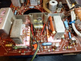 Dort sitzt auch die zum Netzteil gehörende berüchtigte "Stabilyt-Zelle", die hier, obwohl schon undicht, keine Schäden auf der Platine verursacht hat.
