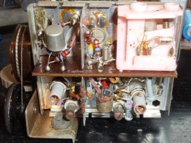 Das Chassis besteht aus einem kleinen Rahmen aus Metall, an den die Platine und seitlich der AM/FM Drehko angebaut sind. Am Drehko wiederum ist die UKW-Box angebracht. Dieses Modell kannte ich noch nicht.