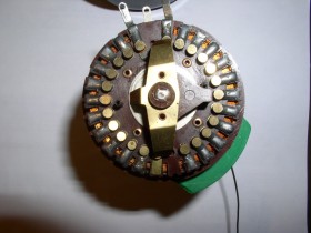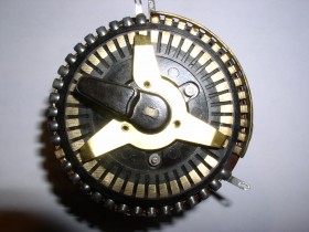 Die "Widerstände" sind mit einer Kupfer(!)-Wicklung realisiert, von der Anzapfungen mit den Kontakten verlötet sind, über die ein Schleifkontakt geht. Die Widerstandwerte werden übrigens bei beiden Reglern gut eingehaltem.
