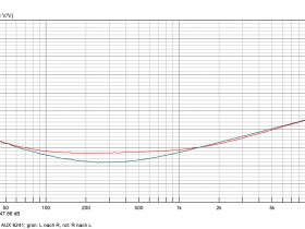 Frequenzgenerator, pegelkonstanter Sweep 20 Hz-20 kHz Sinus an Eingang AUX, jeweils nur an den rechtne Kanal (R) oder den linken Kanal (L), den jeweils anderen Kanal am Eingang kurzgeschlossen.