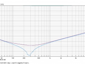 Frequenzgenerator, pegelkonstanter Sweep 20 Hz-20 kHz Sinus an Eingang AUX, jeweils nur an den rechtne Kanal (R) oder den linken Kanal (L), den jeweils anderen Kanal am Eingang kurzgeschlossen.