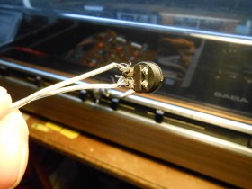 Der verbaute Abspieler 1226 von Dual lässt sich starten, bringt aber nicht den Arm in Abspielposition, ein Problem des zerbröselten Kunststoffröhrchens an der Tonarmsteuerung. Das Teil hatte ich schon
