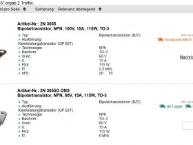 Aber was nützt es, wenn die 2N3055 noch neu produziert werden, aber die Werte mit dem Datenblatt nicht passsen?