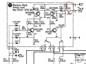 R22 soll also ein sofortiges Entladen des Glättungselkos für +12V bewirken, wodurch das Relais spannunsglos wird. Nachgemessen an den Pins 10 und 11 beider Module: 22 Ohm. Grmpf!