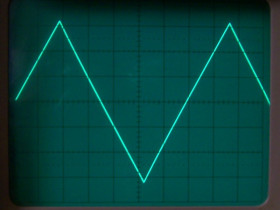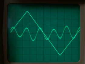 Wenn Du frequenzabhängige Dämpfung mit in die (bei beliebigem höherem Term abgebrochene) Reihenentwicklung einbringen willst, kannst Du das nur nicht in der generischen Summenformel der Reihenentwicklung mit der allgemeinen Frequenzvariablen (x oder Omega) machen, sondern musst jeweils die Dreiecksfunktions-Frequenz bei der Reihenentwicklung spezifisch festlegen, da ja die Eckfrequenz des Tiefpasses für den Einsatz der Dämpfung festliegt. Das läuft auf dasselbe hinaus wie die von mir vorher schon gezeigten entsprechenden Graphen (mit der eingebauten frequenzabhängigen Dämpfung der Terme) für 1 kHz, 3,3 kHz und 10 kHz.