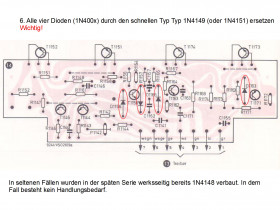 Sollten allerdings bereits 1N4148 dort verbaut sein, ist die Änderung nicht erforderlich. Das ist aber selten und allenfalls bei späten Seriennummern.