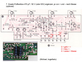 7. Zusatz-Pufferelkos 2 x 470 µF / 50V direkt an den Endstufen (Michael, kugelbalu)