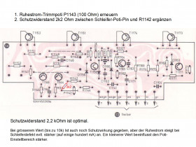2. Nachrüstung eines Schutzwiderstands am Ruhestrompoti ist vorgeschlagen (Michael, kugelbalu), damit bei Potidefekt, bei dem der Schleifer Kontakt zur Leitbahn verliert, der Ruhestrom nicht hochschiesst.