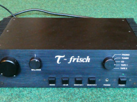 ich beginne mal einen neuen Eintrag. Es soll um einen alten Vollverstärker gehen, den T-Frisch (oder Tau-Frisch) vom Taurus-Vertrieb, der damals von der Fa. Horch gebaut wurde. Hier ist ein Bild: