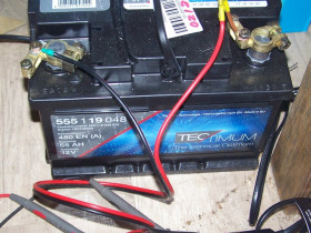 Wie im Bild ersichtlich, nahm ich für den Test eine Autobatterie.