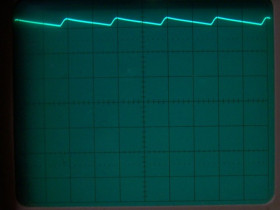 Im Oszillogramm sieht man die Spannung über dem Siebelko C20, alle LEDs leuchten.