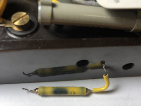 Der andere Kohlewiderstand hat genau 300 Ohm und mit 5 % bezeichnet.(wohl vermessen