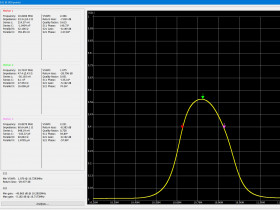 Die Marker stehen auf -3 dB (zur Bestimmung der Bandbreite und der grüne Marker auf Mittenfrequenz.