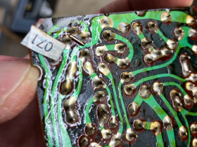 Das ist eine Treiberplatine meines "neuen" 9260. Das kleine Osterei links oben kam unter einem dicken Tropfen Kolophonium zum Vorschein als ich die Platine gewaschen habe um mir Lötstellen genauer anzusehen. Es muss dort Jahrzehnte gewartet haben, kein Zehntel von seinem großen Auftritt entfernt. Ja .. den habe ich jetzt wohl verdorben.