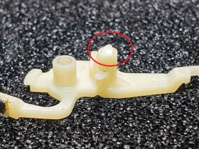 Nun habe ich aber festgestellt das im Spul- und Suchlaufbetrieb die Bremsen der Wickelteller nicht korrekt gelöst bzw. umgesteuert werden weil ein Stift abgebrochen ist.