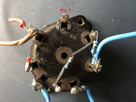 Aber eine Sache habe ich noch. Im muss die EM4 noch anschließen. Die losen Kabelenden messe ich durch um sie zuzuordnen. Anbei ein Bild der Fassung. Bei dem erhabenen Punkt müsste ja Pin 1 sein. Wie herum muss ich denn zählen?