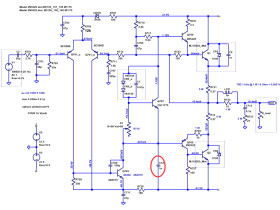 Die Simulation der Endstufenschaltung mit LTSpice mit 100 nF kapazitiver Last am Ausgang und unter Umgehung des LR-Glieds erzwingt HF-Schwingung. Ich habe daraufhin in der Simulation untersucht, welche Massnahme - ausser dem bereits vorhandenen 150 pF Kerko (C709) und dem LR-Glied, noch effektiv ist, diese Schwingung zu eliminieren.