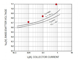 Habe meine frühere Antwort ergänzt. Gehe bitte nochmal dahin zurück und schaue es Dir an. Ich bin mir aber nicht sicher, ob ich das gemessen habe, was Du sehen wolltest. Sicher ist, dass ich VBE(sat) angezeigt bekomme. Fraglich ist aber, ob der eingestellte Strom IE oder IB ist. IC wolltest Du, kann ich aber nicht machen. Ich schätze, Ic und IE sind fast gleich und IB ist nur ca. 1/10 so gross wie IC oder noch kleiner. Dann ist IC ungefähr gleich IE und es gibt die Chance, dass ich nicht ganz falsch liege. Aber meine Hand lege ich dafür nicht ins Feuer. Diese Art der Messung ist nicht dokumentiert / eigentlich nicht mit dem Gerät vorgesehen.