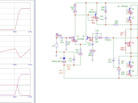 Im realen Leben zeigte sich mit diesen Änderungen zuerst eine Enttäuschung. Die Slew-Rate war zwar nun in Ordnung, aber die Verzerrungen lagen dennoch in einer Größenordnung von 0,7 bis 5%, je nach Wahl des Ruhestromes für den Differenzverstärker. Noch dazu traf dies nun fast über den gesamten Leistungsbereich zu. Die Speisung mit einem Rechtecksignal zeigte, dass aufgesetzte Schwingungen von ca. 3 MHz auf dem Dach die Ursache waren. Auch bei einem hochpegeligen Sinussignal war das zu beobachten. Abhilfe schaffte die Vergrößerung des Millerkondensators am Spannungsverstärkertransistor von 6 pF auf 56 pF. Das lief nur noch via Trial-and-Error an der realen Schaltung, die Simulation zeigte die Schwingneigung nicht.