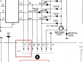 Dieser und auch D3124 waren durch andere Bauteile ersetzt worden. Statt einem BC550 war ein 2SC547C drin, D3124 fehlte gänzlich.