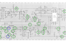 Mysteriös ist, dass der Oszillatorkreis einen scheinbaren Kapazitätsverlust hatte, ohne dass ein Defekt an kapazitiven Bauteilen des Osillatorkreises und anderer Bauteile (s. Bild) feststellbar war. Ich habe das Symptom durch leichte Erhöhung der Kreiskapazität beseitigen können. Aber die Ursache des aufgetretenen Fehlers erschliesst sich mir nicht. Es war offensichtlich "nichts kaputt".