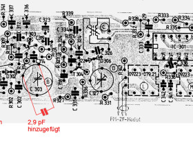 Wenn es an notwendiger Kreis-Kapazität im Oszillatorkreis für die Einstellung (= Verringerung) der Oszillatorfrequenz fehlt und der Trimmkondensator in Ordnung ist, kommen noch die Kapazitätsdiode (Varicap) D302 (BB104 BL bzw. BB204 BL) und der Kreiskerko C302 als evtl. fehlerhaft infrage.