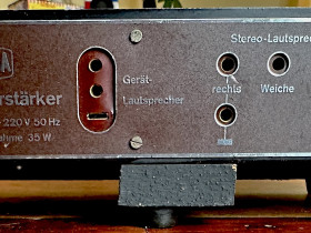 Dieser Verstärker dürfte auch nicht an jeder beliebigen Box ordentlich spielen. Ich habe leider nichts gefunden, ob 4 oder 8 Ohm vorgesehen waren, würde aber auch da erste Versuche mit einfachen zeitgenössischen Lautsprechern vornehmen. Ohne angeschlossene Boxen sollte er übrigens nicht in Betrieb genommen werden.