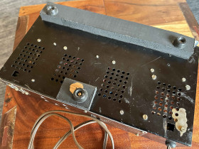 Eines vorab: Auf den wenigen Fotos im Netz ist der Verstärker stets mit mehr oder minder geschmackvollen Frontblenden aus Holz, Pressspan oder, in meinem Fall, Pertinax zu sehen.