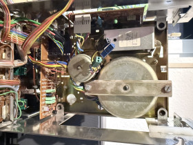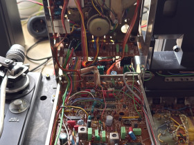 Außer dem Kassettendeck (Papst CDD 102), welches nur ohne Kassette vor- und zurückspult. Sobald eine Kassette eingelegt ist, bewegt sich beim Spulen nichts mehr, es quietscht nur. Hier habe ich den Idler im Verdacht, der Gummi ist schon sehr verhärtet, ebenso ist der Riemen zum Zählwerk sehr ausgeleiert. Play funktioniert gar nicht, da sich der Capstan nicht dreht (manuell dreht sich die Achse sehr leicht). Alle Tastenbefehle werden an das Laufwerk weitergegeben, es schaltet wie es soll.