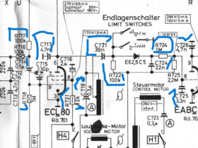 Hatte mir dann im Schaltplan erst einmal überlegt, weil du auch C716 sagtest, was könnte es sein, habe mir das erst einmal markiert, habe ich erst einmal alles was nicht schön war nachgelötet was derjenige vor mir gemacht hat. Als weiteren Schritt hatte ich mir erst einmal C714 vorgenommen, weil der Pfad kommt von der EABC80 in Richtung ECL80, ich hoffe ich habe das so korrekt gelesen im Schaltplan. Jetzt schon einmal ein kleiner Teilerfolg, wenn ich die Taste drücke für den Sender suchen stellt die Automatik wieder nachbzw regelt nach.