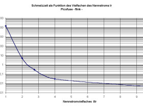 Aus den Kennlinien dieser Sicherungen (Picofuse flink) ist ersichtlich, dass die Sicherung in Ausführung "flink" beim Doppelten des Nennstromwertes ca. drei bis fünf Sekunden benötigt, um auszulösen.