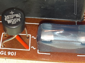 kleinen Si-Brückengleichrichter runder Bauform, 1,5 A Nennstrom ausgetauscht.