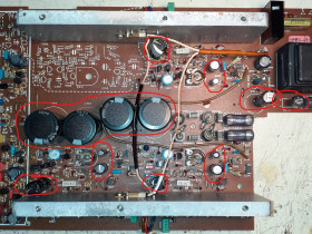 Es gibt keine Fehlfunktionen der Elektronik. Selbst der Hochtonzweig beider Boxen läuft, überprüft per Oszi und auch mittels einem provisorisch angeschlossenen Hochtöner. Entgegen meiner sonstigen Vorgehensweise werde ich hier aber alle Frako-Elkos ersetzen. Der Zugang zur Elektronik erfordert doch so einigen Aufwand, das muss ich nicht noch einmal haben, falls doch einer dieser Elkos sich mal mit einen Kurzschluss verabschiedet. Besonders falls das einer der Ladeelkos ist, gibt es dazu noch Folgeschäden.