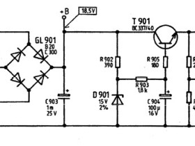 Transistor T81 und auch den Tantalkondensator C906, verantwortlich für die Glättung der Basisvorspannung der Filtereingangstransistoren von Mitteltöner und Hochtöner, habe ich schon getauscht, das ergab leider keine Besserung. Nun geht mein Verdacht in Richtung der Zenerdiode D501 im Netzteil oder dessen Transistor T901. Allerdings lässt sich dort kein Knisterpeak nachweisen, weder an Punkt D (9,5 V hochohmig), noch an Punkt C (14,5 Volt) Außerdem wirkt die Sache dann ja auch auf die restlichen beiden Kanäle. Deren Filterschaltungen lassen aber vermutlich nur wenig von diesem Störsignal durch.